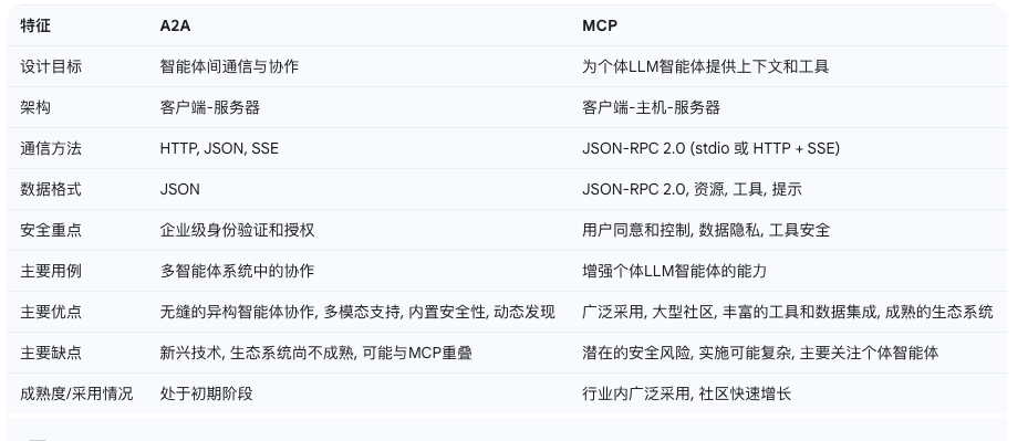 - 侧重通信框架:A2A协议主要关注智能体之间的通信和协作框架的构建,对于个体智能体自身能力的提升没有直接的帮助。