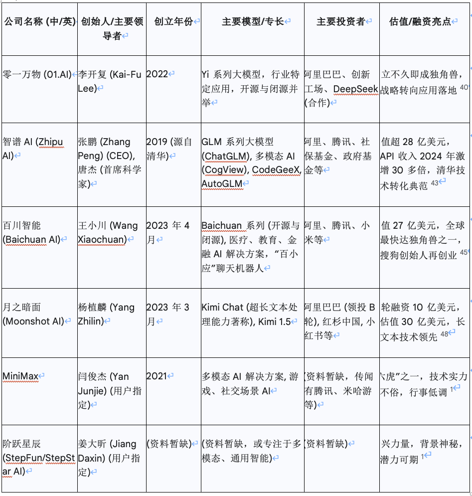 上回书说到图灵奖得主姚期智院士归国执教,为中国AI奠定理论基石;字节跳动新帅梁汝波引领应用潮流,豆包AI声名鹊起。本回,咱们将视线聚焦于中国人工智能领域最具活力的创新腹地——首都北京。近年来,随着ChatGPT的横空出世,全球掀起了一股大型语言模型(LLM)的研发狂潮。在这场浪潮中,一批专注于LLM的中国初创企业如雨后春笋般涌现,它们以其颠覆性的技术、灵活的机制和雄厚的资本,搅动着AI江湖的风云,被业界誉为“AI六虎” 1。这些企业及其背后的领军人物,正展开一场群雄逐鹿般的激烈竞赛,欲在这方兴未艾的大模型时代拔得头筹,重塑未来。本回书,便要为列位看官细数这“京沪六虎”的英雄谱,看他们如何各显神通,逐鹿中原。