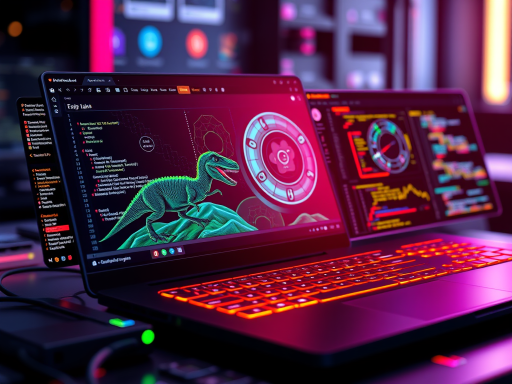 - 复杂游戏与动画开发:在一项测试中,模型仅凭一句提示词就生成了一个包含八大行星公转轨迹的太阳系SVG动画;在另一项测试中,它从零构建了一个3D风格的“侏罗纪恐龙狩猎游戏”,包含物理碰撞检测、记分系统和3D模型渲染,。