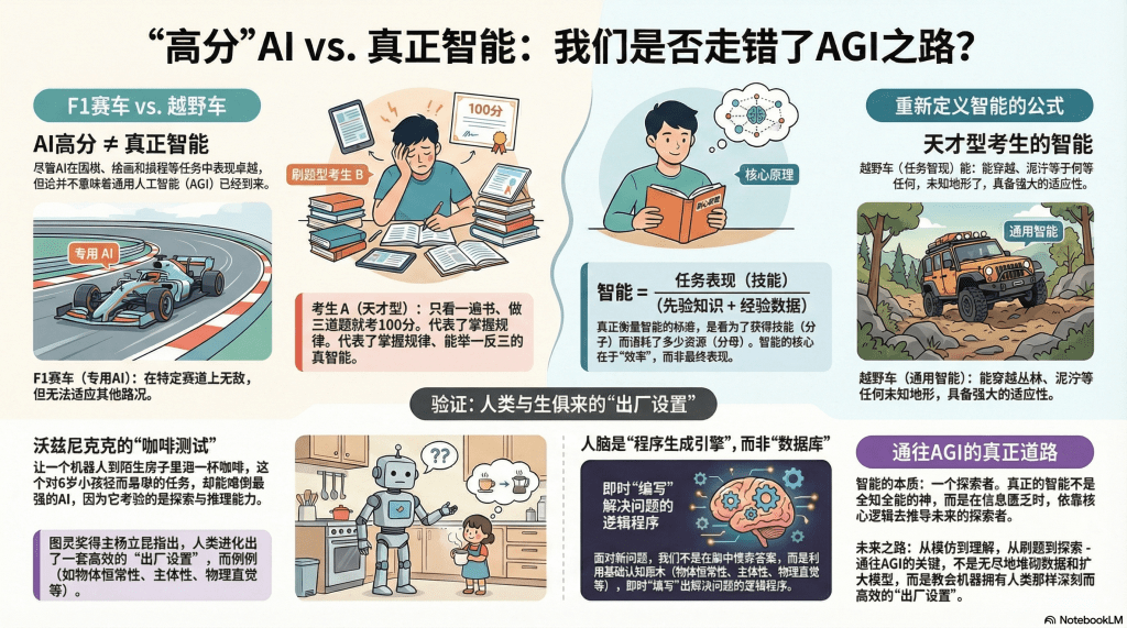 真正的 AGI,追求的不是在某一张考卷上拿满分,而是那种“既能装水又能装沙”的适应性。
