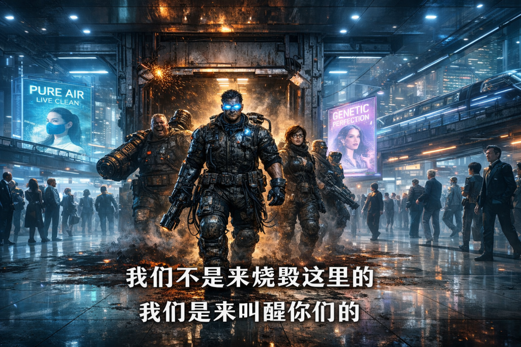“我们不是来烧毁这里的,”林一的声音通过兄弟会的扩音阵列回荡在广场上,沙哑却坚定,“我们是来叫醒你们的。”