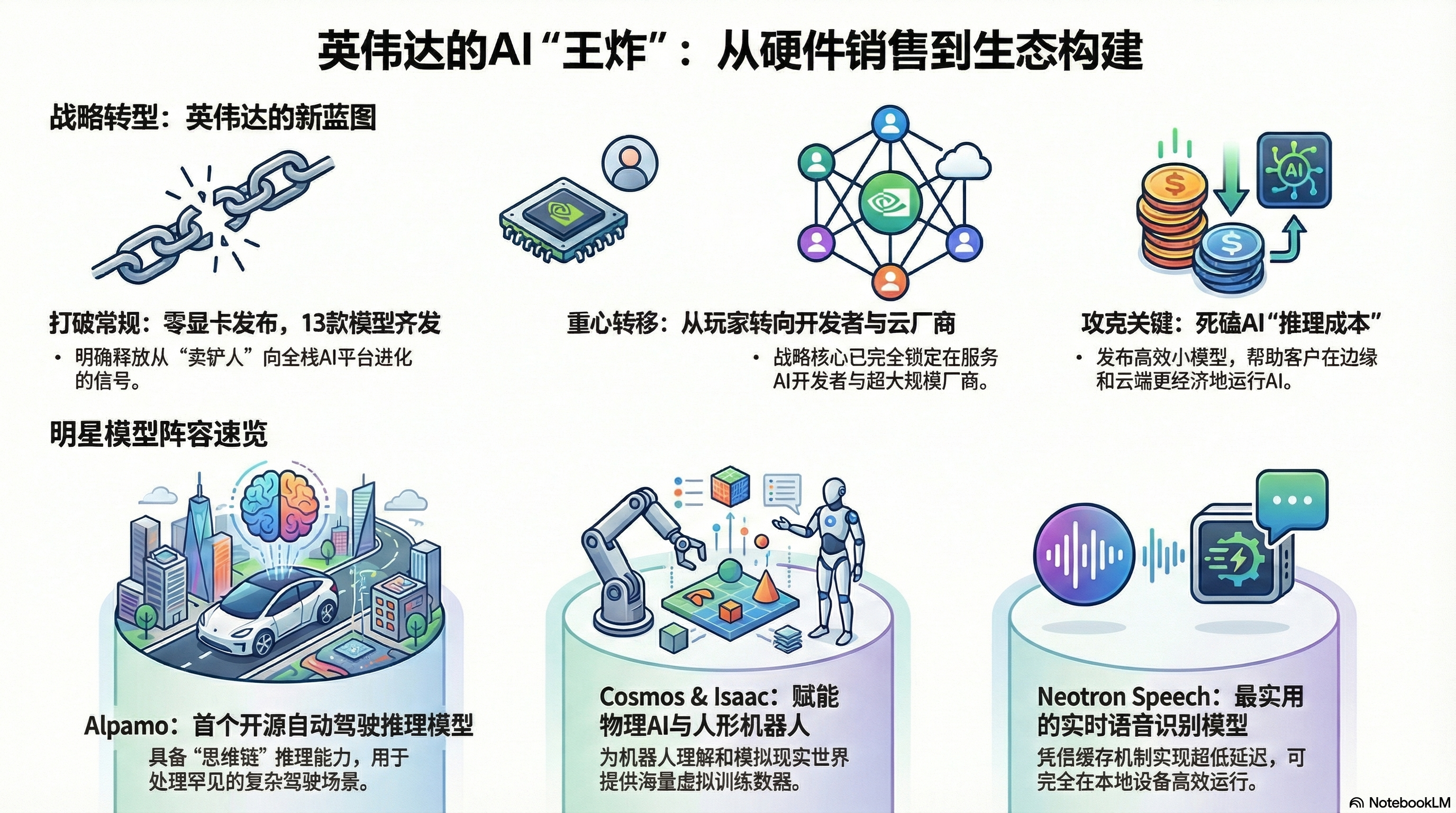 - 死磕“推理成本”:Vera Rubin 平台和这些新模型的一个共同特点是降低推理成本。随着 AI 应用的普及,云厂商急需降低运行 AI 的成本以提高利润率。英伟达发布优化极佳的小模型(如 10B 的 Alpamayo 和高效的 Neotron),正是为了帮助客户在边缘设备和数据中心更便宜地运行 AI。