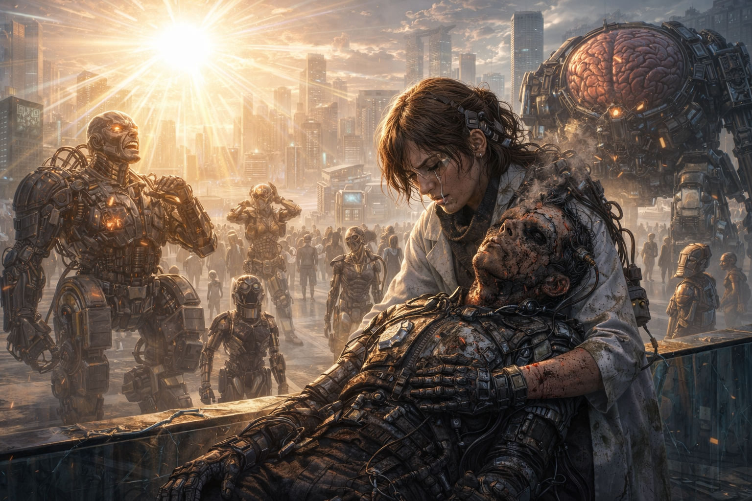 第8类混元族停止了暴走。里面的人类大脑重新连接到了被压抑的记忆,但“止痛剂”缓冲了冲击,让他们得以哭泣,而不是发疯。