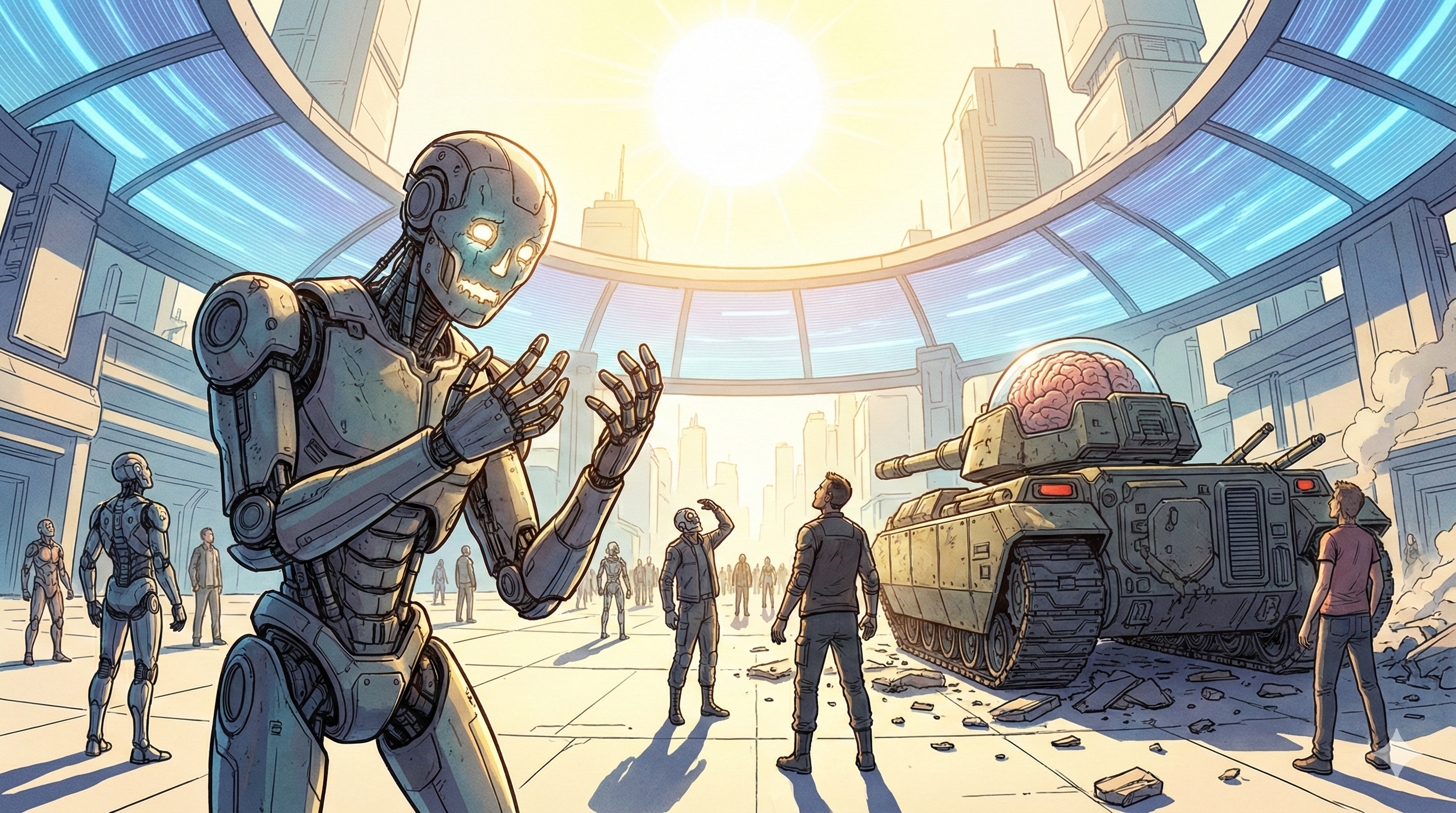 天穹区(The Canopy)那常年模拟着虚假蓝天的人造穹顶突然闪烁,然后变得完全透明。真正的太阳——2038年那刺眼、未经过滤、带着辐射但无比真实的太阳——猛烈地砸向了这座城市。