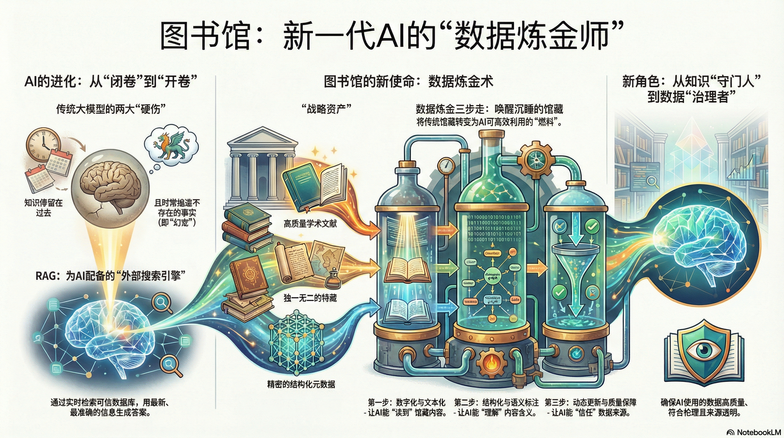 但这个机遇伴随着一个挑战:图书馆必须重新思考自己与数据的关系,从“收藏者”转变为“供应者”,从“守门人”转变为“数据炼金师”——将沉睡的馆藏,转化为AI可以高效利用的结构化知识。