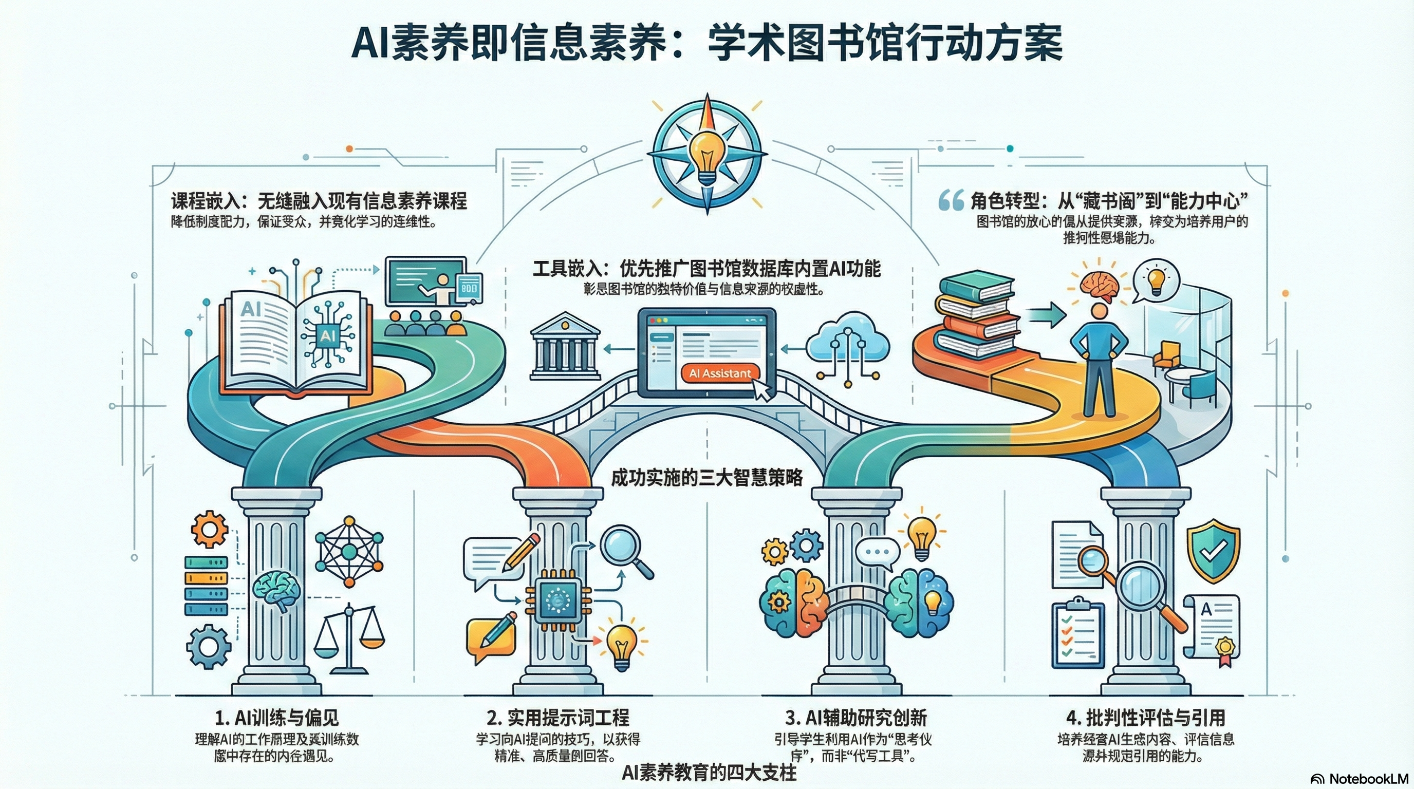 第二,图书馆应主动定位为AI教育权威。Smith主动与教务副校长会面,提出"让图书馆在AI的使用、理解和时效性方面处于权威地位"。