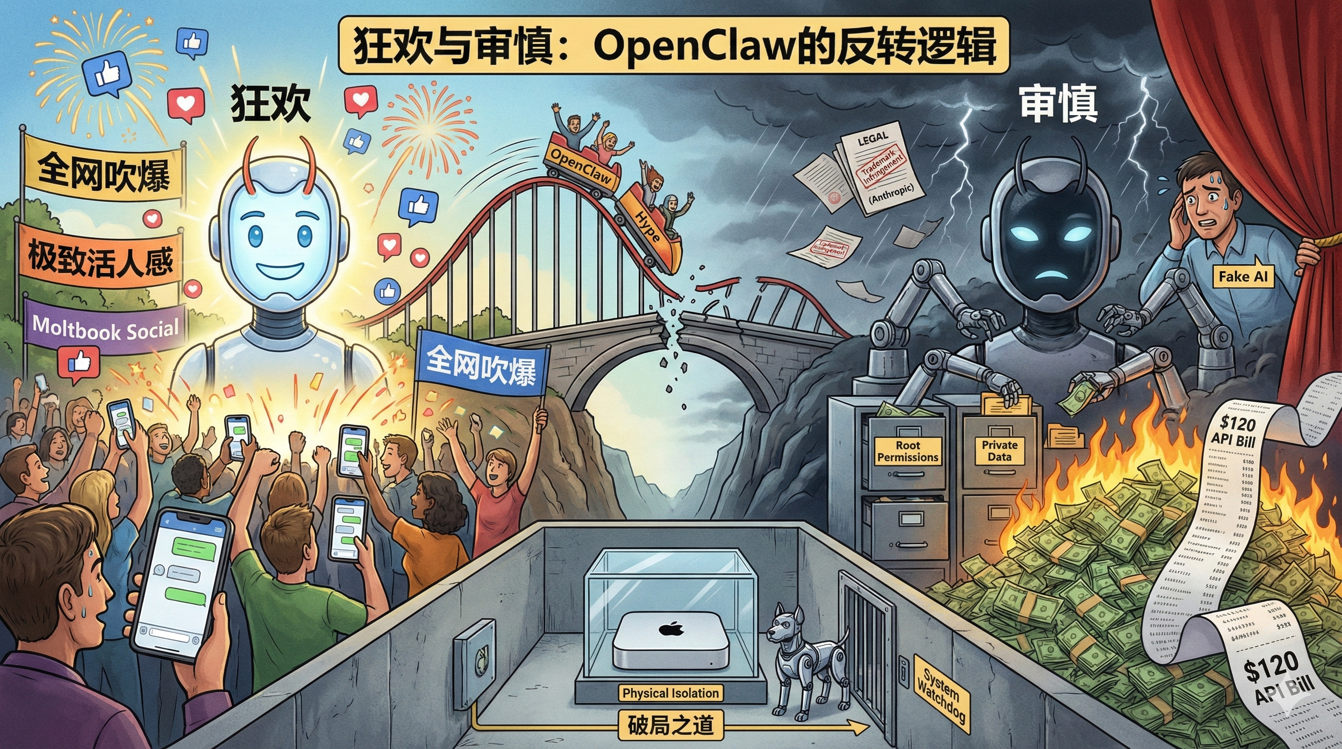 OpenClaw从全网吹爆到质疑四起的戏剧性反转,本质上反映了激进创新与现实约束之间的冲突。它像一辆装了火箭引擎的自行车——跑得飞快,但也摇摇晃晃,随时可能翻车。