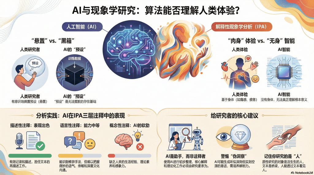 那么AI在这个过程中扮演什么角色?三重诠释学?AI诠释研究者对参与者体验诠释的诠释?这个链条越拉越长,我们离那个“活生生的体验”越来越远。