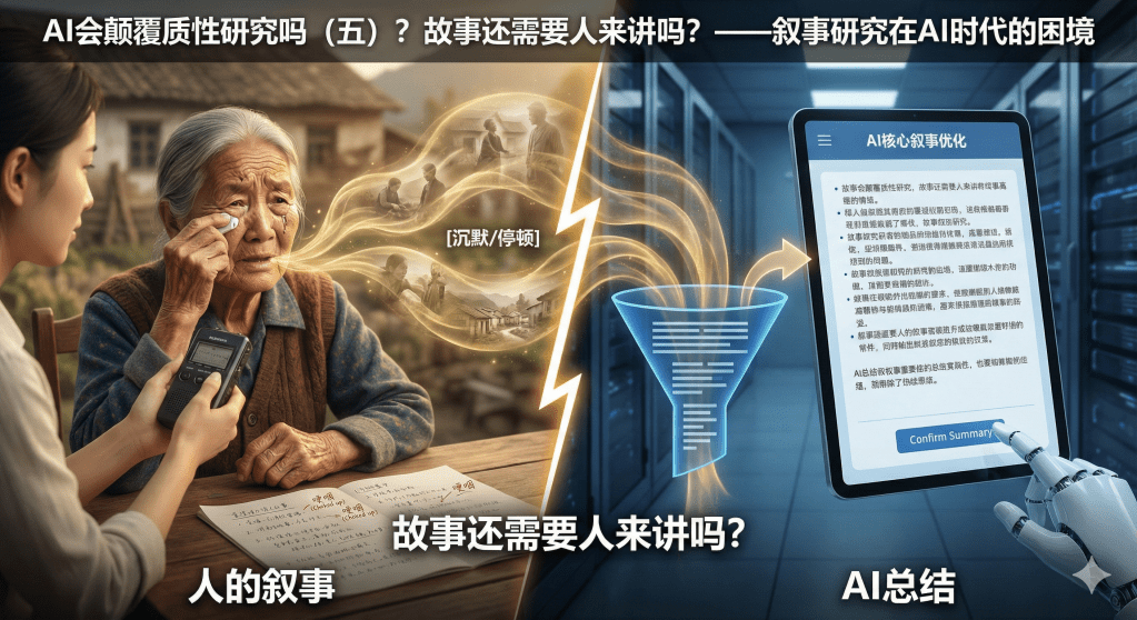 更深的问题是:叙事研究的目的是什么?如果只是“提取信息”,AI确实更高效。但如果目的是见证苦难、赋予意义、实现对话性正义(dialogical justice),那么研究者的在场、倾听和共情就是不可替代的。