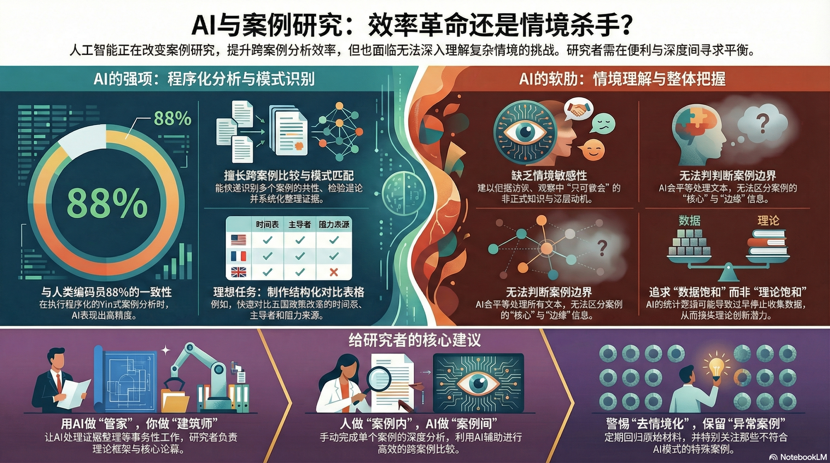 这给我们的启示是:不是所有案例研究都一样。研究证券欺诈和研究乡村振兴,对“情境理解”的要求很不同。选择是否使用AI,应该基于你的案例特征和研究目的。