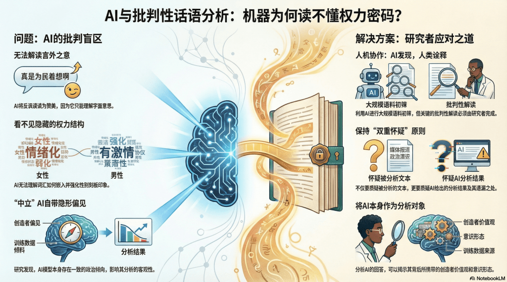古人讲“言外之意”“弦外之音”,批判性话语分析正是要解读这些“不说之说”。而AI是字面意义的囚徒。