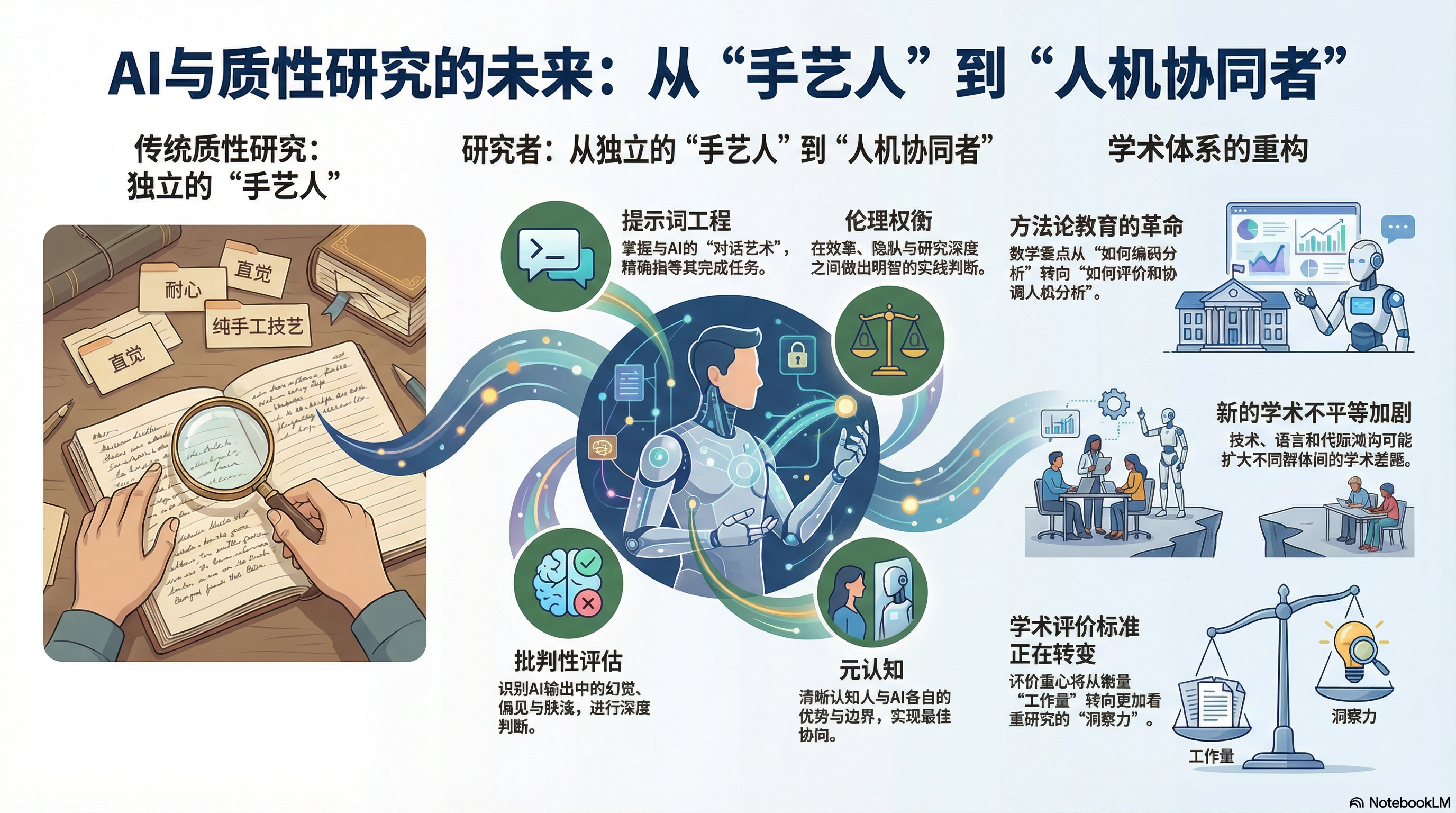 - 赢家:掌握AI但保持批判性的研究者;有独特理论视角的研究者;能做深度诠释的研究者