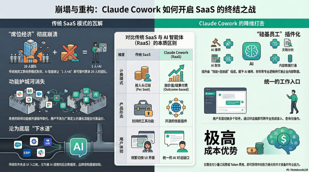 如果我们剥离掉关于 AI 的炒作,深入剖析 Anthropic 推出的Claude Cowork及其背后的AI 智能体(Agent)逻辑,会发现这不仅是产品功能的迭代,更是一场针对传统软件服务业(SaaS)长达十五年繁荣基石的“降维打击”。