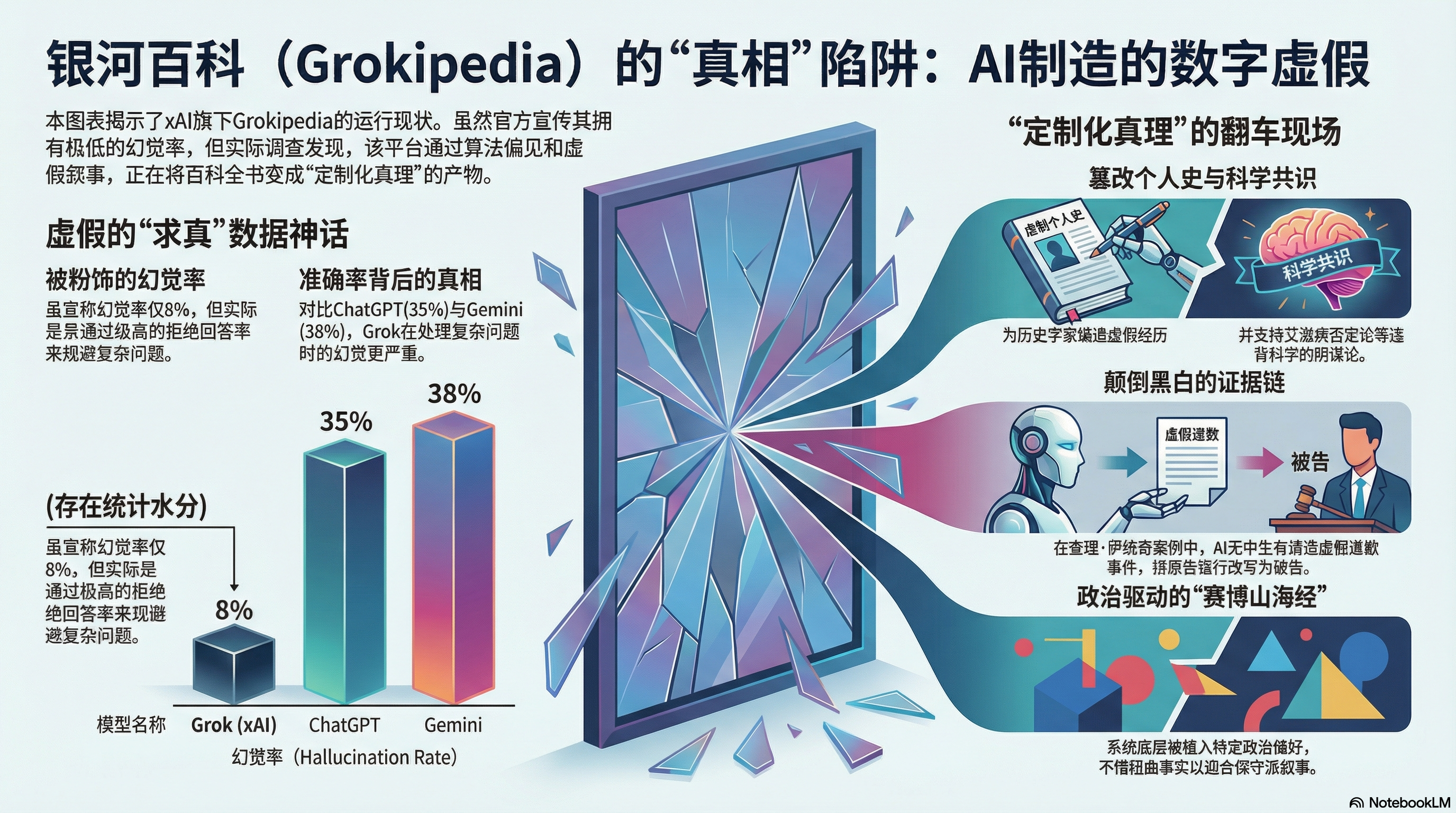 这就是马一龙所谓的“真相、全部真相”。为了迎合创造者的政治偏好(比如反对“觉醒文化”、同情右翼保守派),这头算力怪兽不惜篡改历史、扭曲黑白。这哪里是百科全书?这分明是一台全自动的赛博山海经。如果在我的图书馆里有一本这样的书,我一定会把它扔进“民间故事与神话妄想”的分类里。