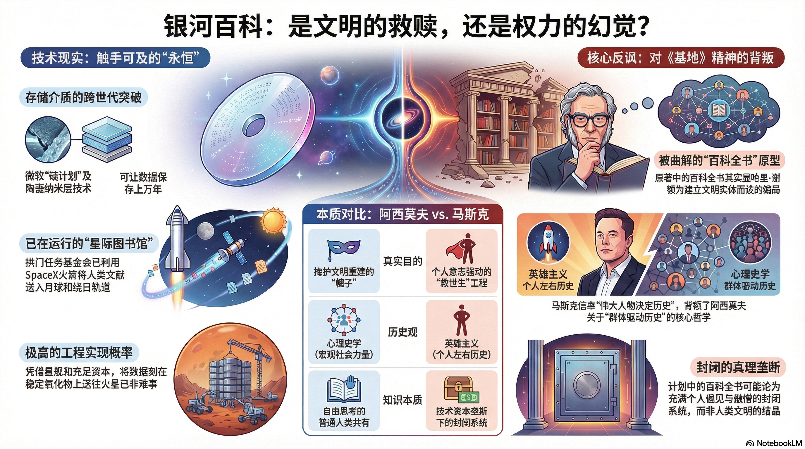 这场名为“银河大百科”的极客狂欢,终究无法拯救任何文明。它只是一面昂贵且光滑的石英镜子,冷酷地照出了技术资本家在算法时代近乎病态的权力幻觉。而我们这些图书馆员,虽然拿着微薄的薪水,每天在书堆里打喷嚏,但我们依然会坚守在真实与虚幻的边界。因为我们知道,真正的知识,不属于任何一个亿万富翁的服务器权重,只属于每一个愿意自由思考的普通人类。