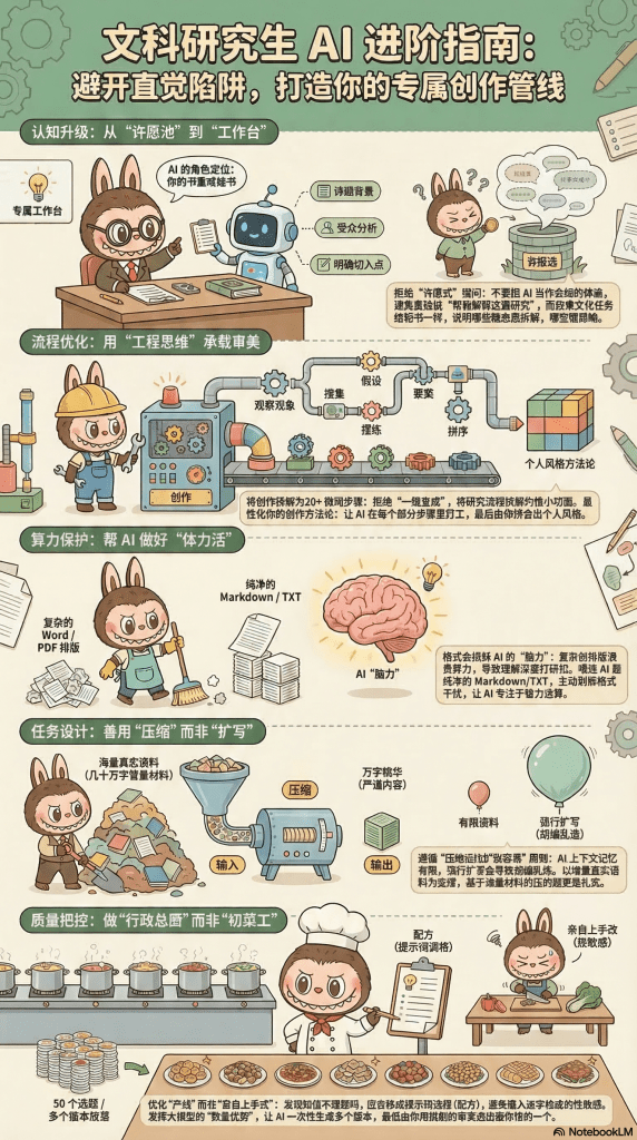 建议:遵循“压缩远比扩张容易”的原则。像我们做严肃研究一样,先把海量的真实语料、几十万字的背景材料喂给它,然后让它从中提炼、压缩出一万字。有扎实材料支撑的“压缩”,其质量远超让 AI 凭空捏造的“扩写”。