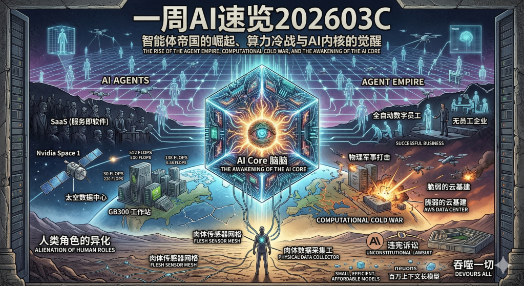 本周的AI新闻不再仅仅关于算法与跑分,它已经硬生生地砸向了地缘政治的核心、传统企业的组织架构,甚至是物理世界的军事打击目标。从“软件辅助”走向“全自动数字员工”,从“云端算力”走向“太空数据中心”与“防空阵地”,AI已彻底褪去玩具的温和外衣,演变为重塑全球权力与经济格局的绝对基建。本周发生的事件,正在为下一个十年的科技霸权与人类社会分工写下注脚。