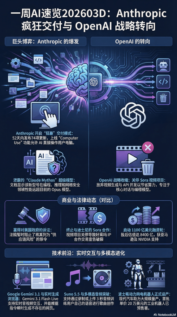 综合本周的动态,我们可以清晰地得出一个结论:大语言模型作为单纯文本生成器的历史使命已经结束。 OpenAI放弃视频生成转攻电商基础设施,Anthropic押注桌面级控制,Google追求全生态多模态同频,以及物理机器人的规模化投产,都在共同指向一个终局——AI正在完成从”智力游戏”向”系统级生产力工具”的痛苦转身。